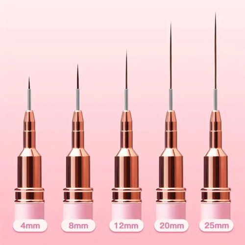Σετ 5 Πινέλων Τέχνης Νυχιών για Λεπτομέρειες, Μακριά Πινέλα Γραμμής Μανικιούρ, Σετ Λεπτών Πινέλων για Σχέδια με Τζελ, Μεγέθη 4mm, 8mm, 12mm, 20mm, 25mm.