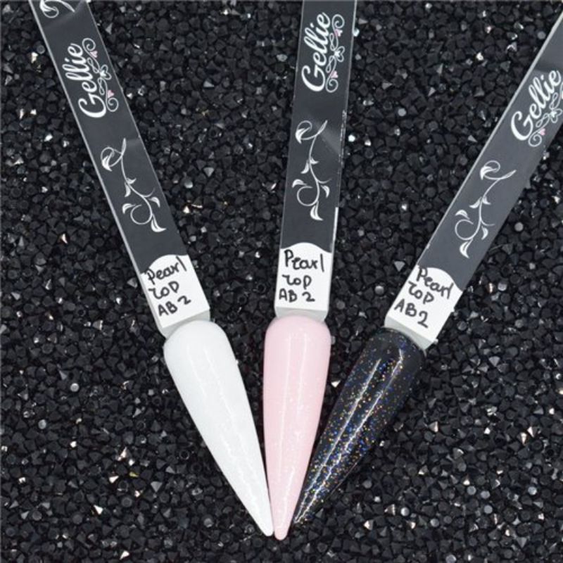 Gellie Pearl Top – AB 02 – Top Coat για ημιμόνιμο, χωρίς κολλώδη επιφάνεια ( No wipe ). Διάφανο με ιριδίζον glitter – 10ml
